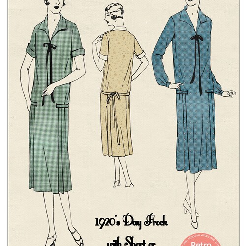 1920s Casual Day Dress Pdf Print At Home Sewing Pattern Bust Etsy